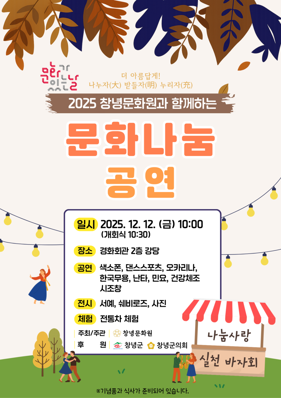 Á¦¸ñ [2025 â³ç¹®È­¿ø°ú ÇÔ²²ÇÏ´Â ¹®È­³ª´® °ø¿¬] ¹®È­°¡Á·, ±º¹Î ¿©·¯ºÐµéÀ» ÃÊ´ëÇÕ´Ï´Ù!