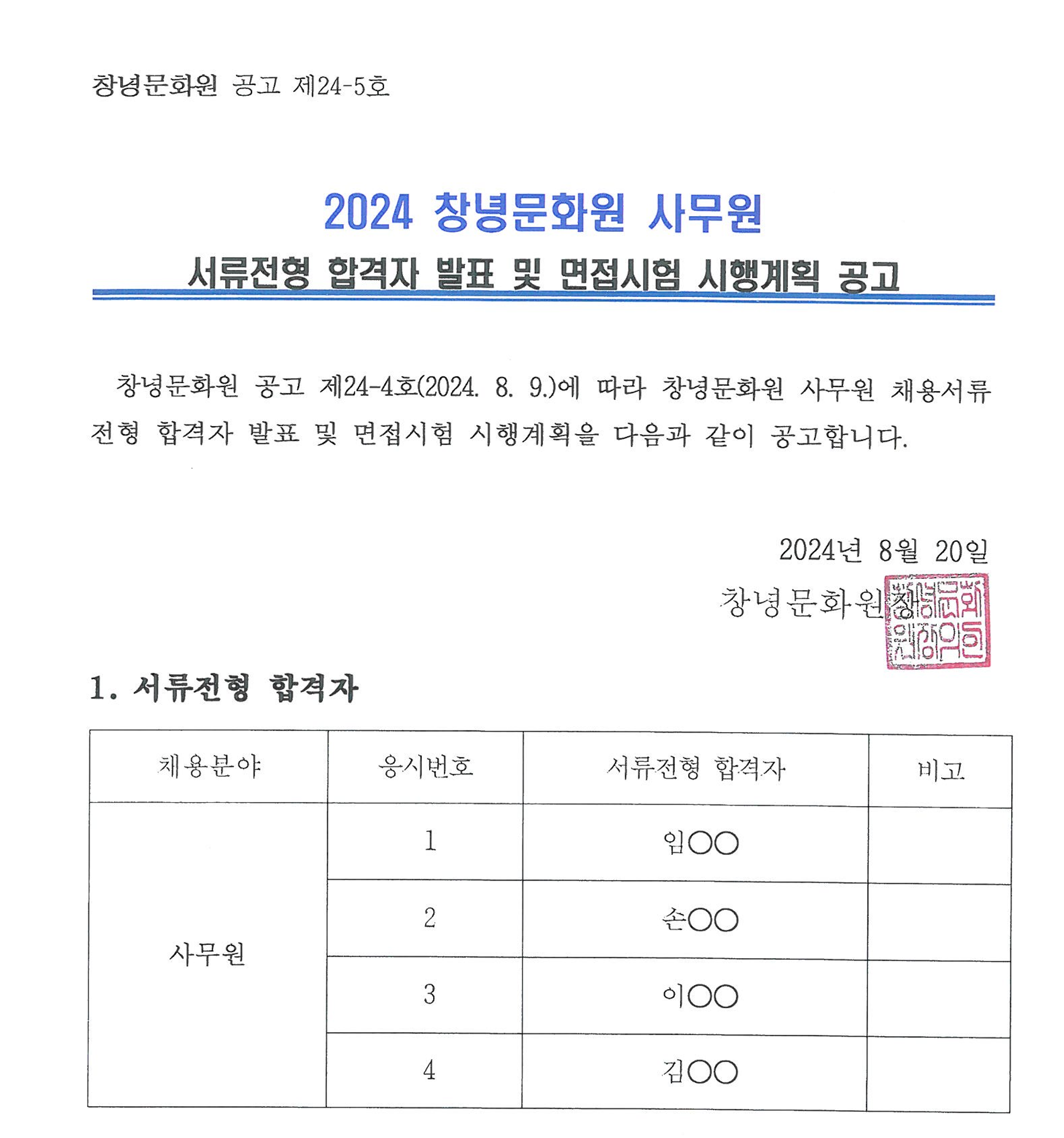 <2024 â³ç¹®È¿ø ½Ã¹«¿ø ¼·ùÀüÇü ÇÕ°ÝÀÚ ¹ßÇ¥ ¹× ¸éÁ¢½ÃÇè ½ÃÇà°èȹ °ø°í>