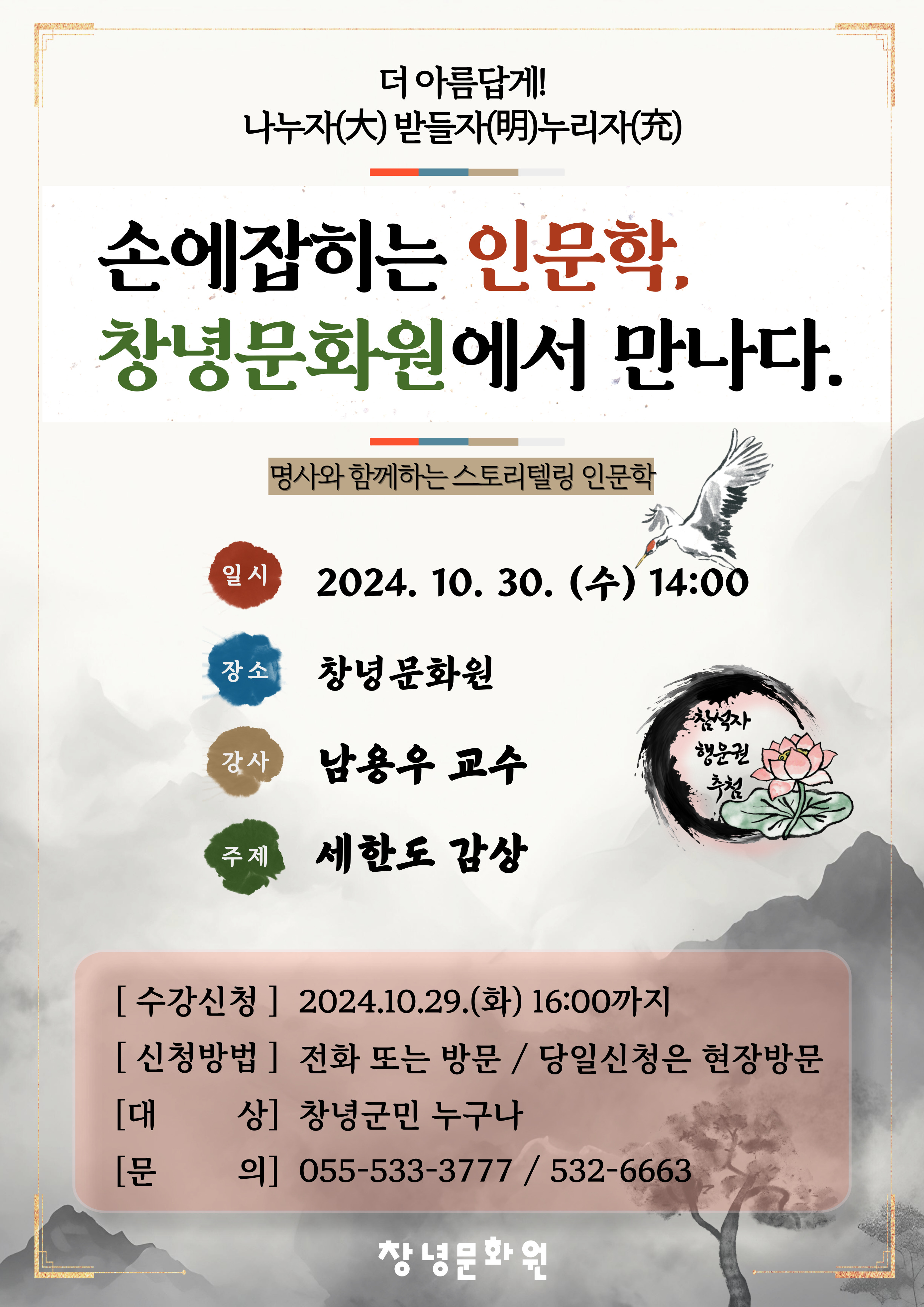 <¼Õ¿¡ ÀâÈ÷´Â Àι®ÇÐ, â³ç¹®È¿ø¿¡¼ ¸¸³ª´Ù!> 2024³â 10¿ù 30ÀÏ(¼ö)¿¡ Àι®ÇРƯ° ¼ö¾÷ÀÌ ¿¹Á¤µÇ¾î ÀÖ½À´Ï´Ù. ¼ö°½ÅûÀº ¹®È¿øÀ¸·Î ¹æ¹® ¶Ç´Â ¿¬¶ôÁÖ¼¼¿ä. ´çÀÏ ¹æ¹®µµ ȯ¿µÇÕ´Ï´Ù. ¸¹Àº °ü½É ¹Ù¶ø´Ï´Ù.~^^